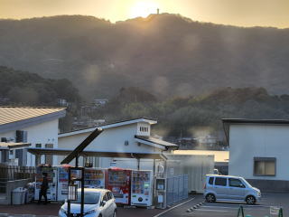 上関上盛山に、夕日が隠れちゃった〜