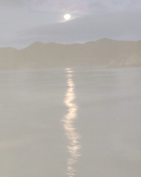 祝島から撮ってます。手前に上盛山が影のように映っています。