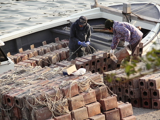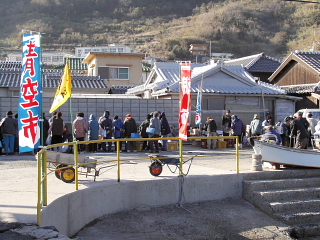 寒タコ漁、解禁です。仲良く?積み込み作業。