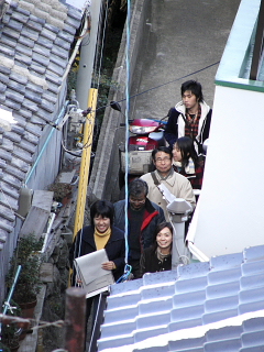 今日は、広島工業大学の環境設計グループが、祝島の町並み調査に