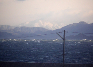 対岸の山には雪が積もっていました。