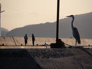 港内はカラッポ。足長おじさん(灰鷺)が独り闊歩?!